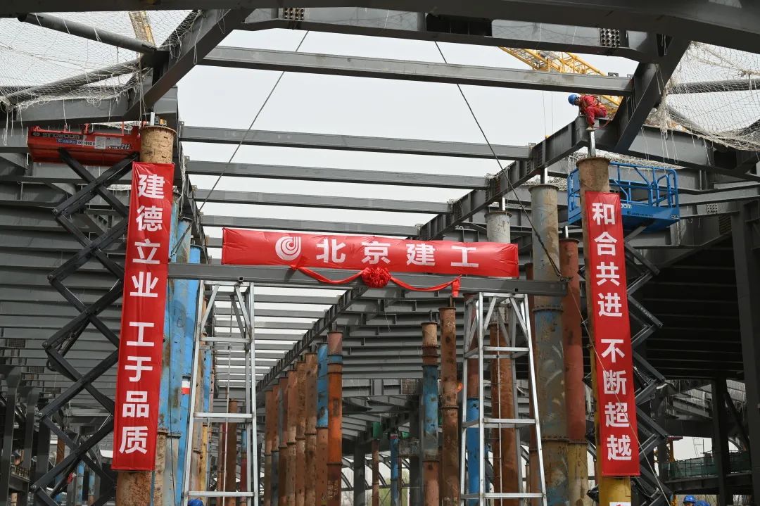 3月22日上午,中關(guān)村論壇永久會(huì)址工程施工現(xiàn)場(chǎng)再次傳來(lái)捷報(bào),隨著最后一根結(jié)構(gòu)鋼梁穩(wěn)穩(wěn)升空,吊裝就位,這座備受關(guān)注的首都“科技會(huì)客廳”如期實(shí)現(xiàn)主體結(jié)構(gòu)封頂,向著8月底工程整體竣工交付的節(jié)點(diǎn)目標(biāo)邁出了關(guān)鍵一步。
