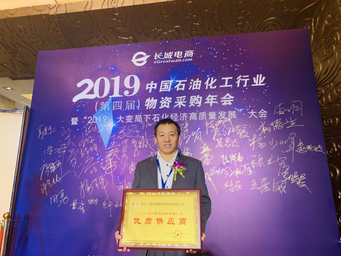 11月7-8日,2019(第四屆)中國(guó)石油化工行業(yè)物資采購(gòu)年會(huì)暨2019大變局下石化經(jīng)濟(jì)高質(zhì)量發(fā)展大會(huì)在北京召開(kāi)。三聚環(huán)保榮獲2018-2019年度中國(guó)石油化工“優(yōu)質(zhì)供應(yīng)商”榮譽(yù)稱(chēng)號(hào),三聚環(huán)保市場(chǎng)營(yíng)銷(xiāo)部總經(jīng)理許金林出席會(huì)議并領(lǐng)獎(jiǎng)。