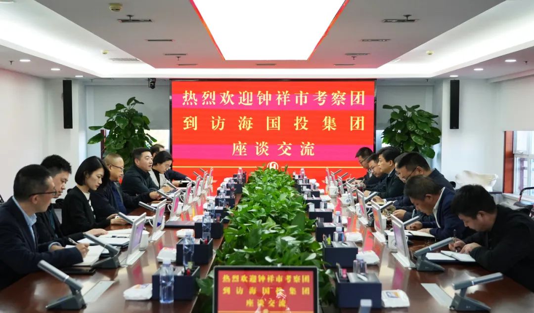 2023年11月6日下午,鐘祥市市委書記周軍,鐘祥市副市長劉濤,鐘祥市胡集經(jīng)濟(jì)技術(shù)開發(fā)區(qū)主任、胡集鎮(zhèn)黨委書記胡濤等一行到訪海國投集團(tuán)座談交流,集團(tuán)黨委書記、董事長張國斌,黨委副書記、總經(jīng)理于志偉,副總經(jīng)理肖琳娜,相關(guān)業(yè)務(wù)部門及下屬企業(yè)負(fù)責(zé)人參加座談。